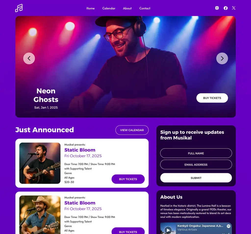 - Google Maps and Spotify embed