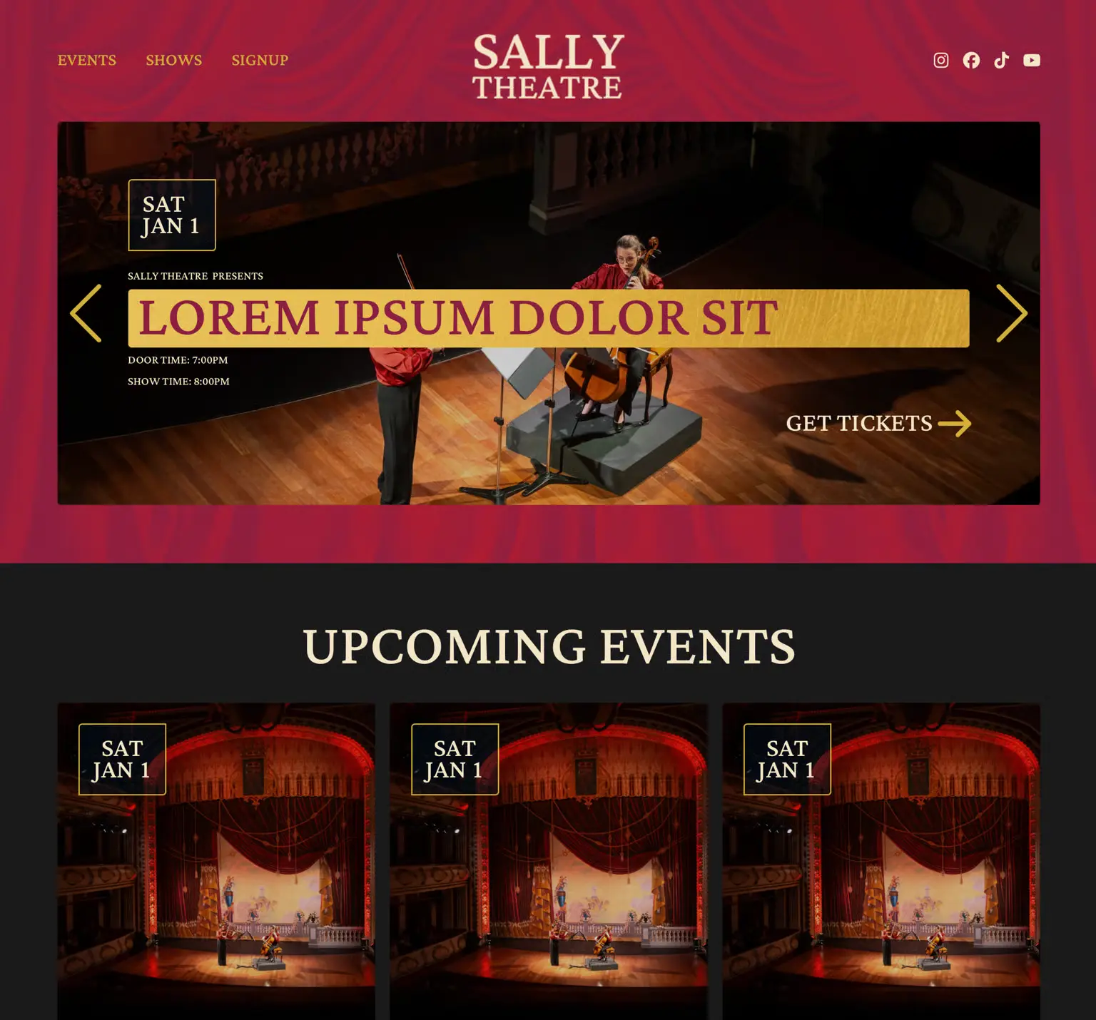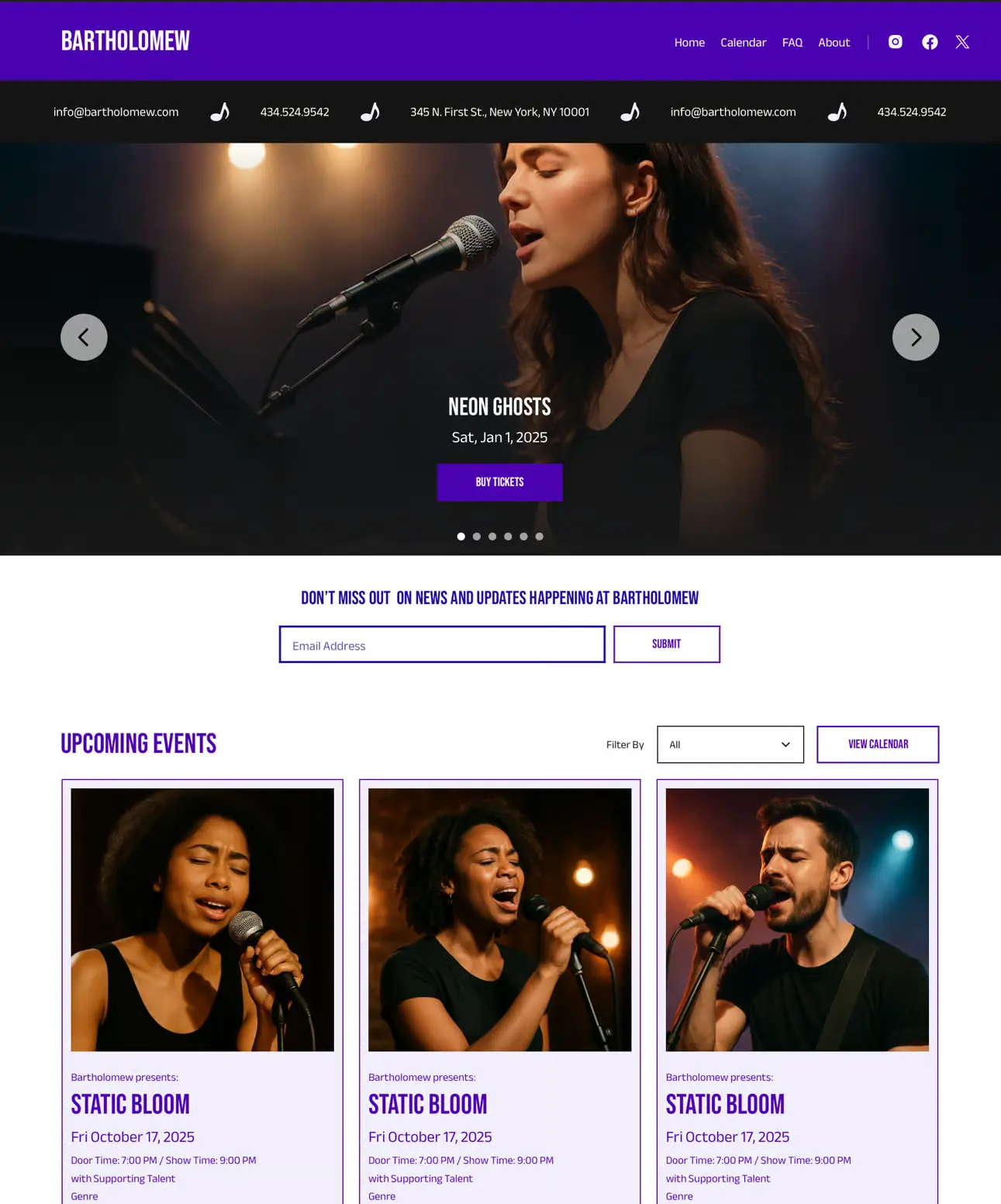 - Include Calendar Page, Event Sliders